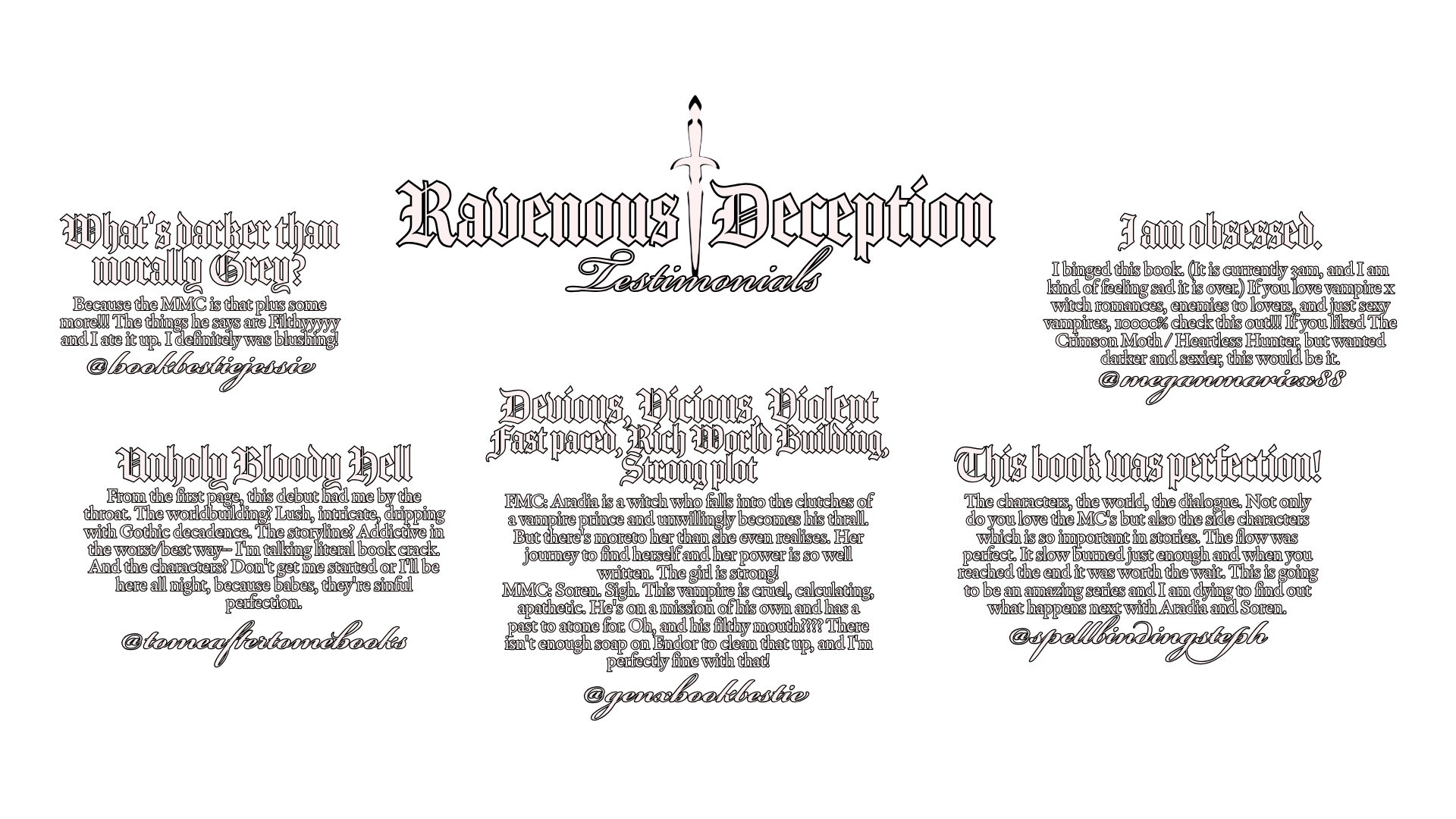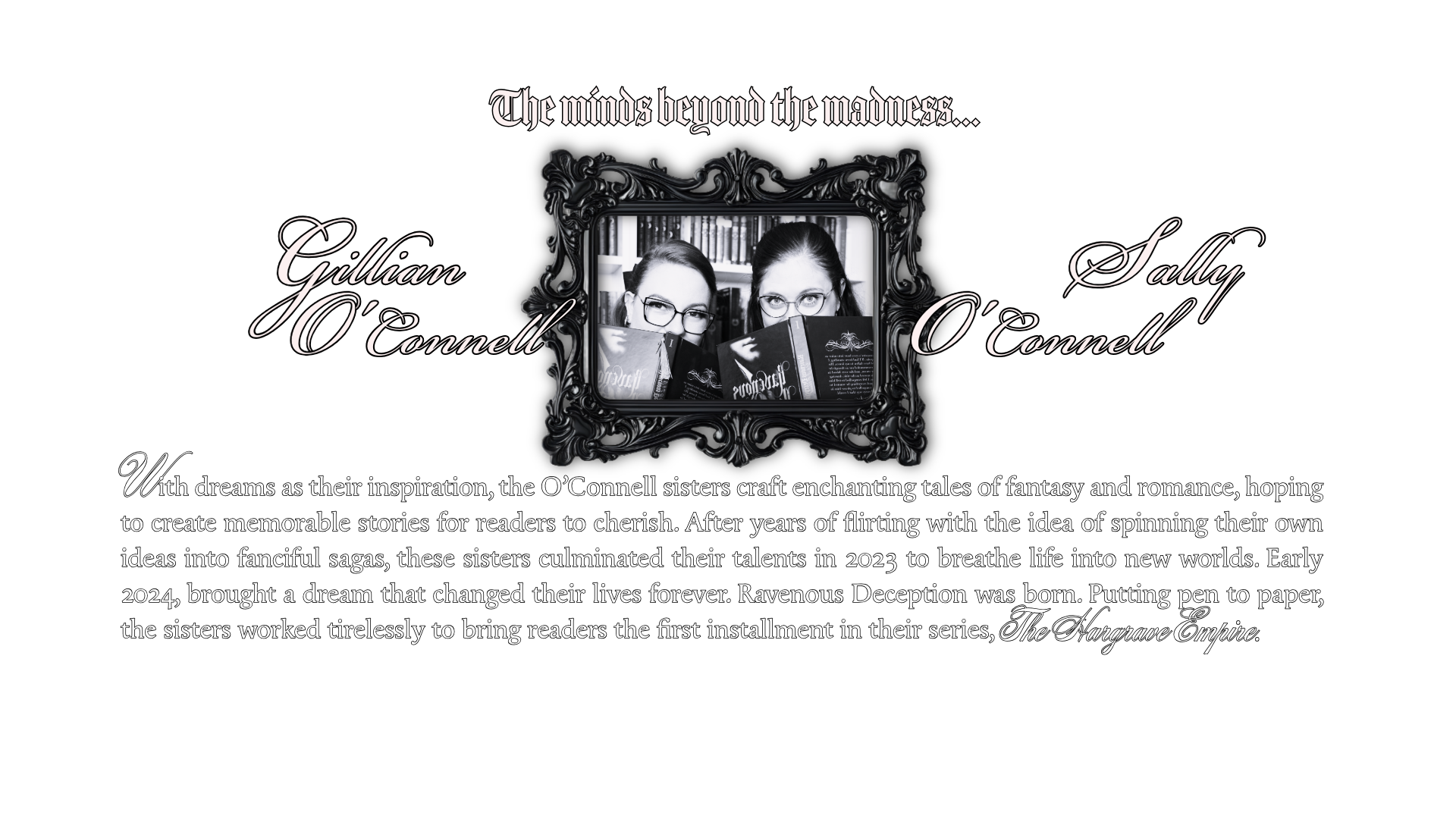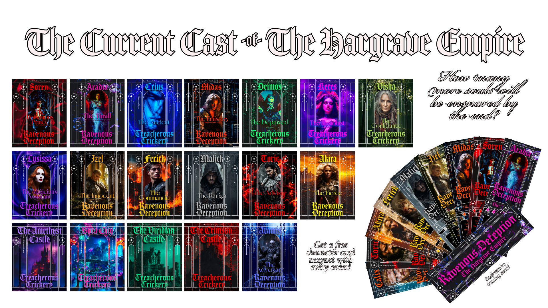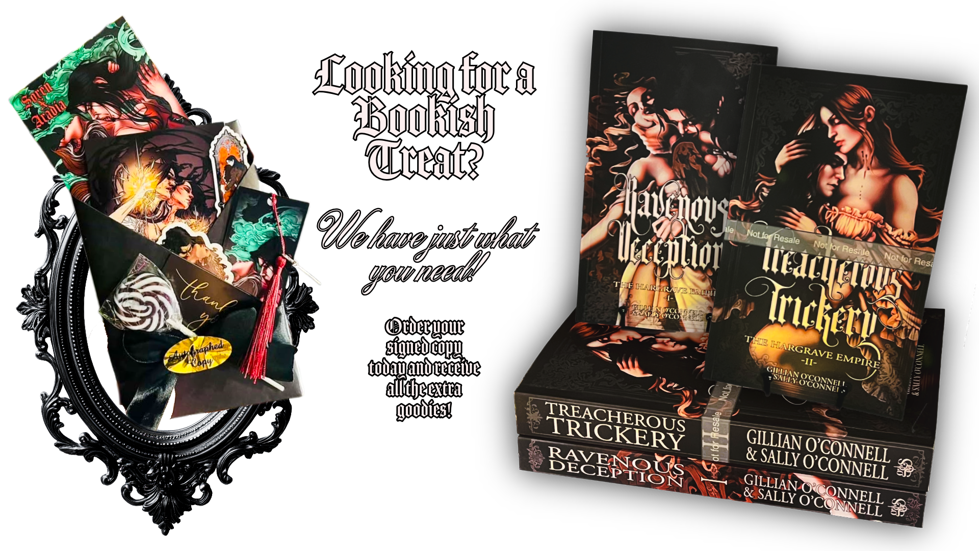 ? ? Order Now! Shop Quick View Ravenous Deception *Wrapped & Packed Signed Paperback* $22.95 Quick View The official Hargrave Empire Coloring book (For books 1&2) $10.00 Quick View Prints & Printed Bookmarks from $4.50 Quick View Vampire Smut Slut Acrylic Keychain Badge $15.00 Quick View Book Lover RX Acrylic Bookmark $15.00 Quick View Book Cults and Covens Admission Keychain $13.50 Quick View Touch Her & Die Acrylic Bookmark $12.00 Quick View Set The world On Fire Acrylic Bookmark $12.00 Quick View Vampire Smut Slut Acrylic Bookmark $12.00 Quick View Treacherous Trickery *Wrapped & Packed Signed Paperback Edition* $22.95 BUT WAIT…THERE’S MORE! BLOGFollow along on our writing adventure, and learn more about what is to come. Take me there! Subscribe for our Newsletter Sign up with your email address to receive news and updates. First Name Last Name Email Address Sign Up We respect your privacy. You may unsubscribe at anytime. Thank you!